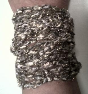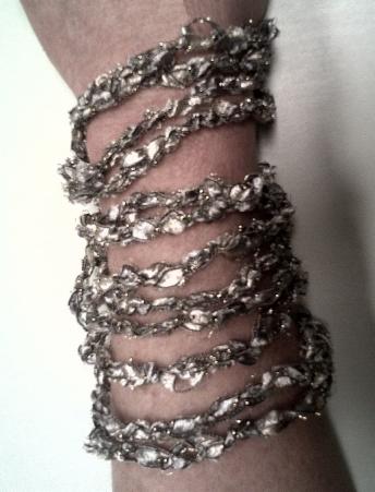 Bracelets are a fun addition to your accessories..... and they can match your Divine Thread necklace or it can be a stand-alone piece. We made this silver, pearl and black bracelet for a "Dance Team" and it gave the ladies alot of choices in how they were to wear it....you can see a photo of it all together as well as more loose on the arm (with no clasp)! One of the things they loved about this product is that it looks like metal but it's SOFT to the touch!
